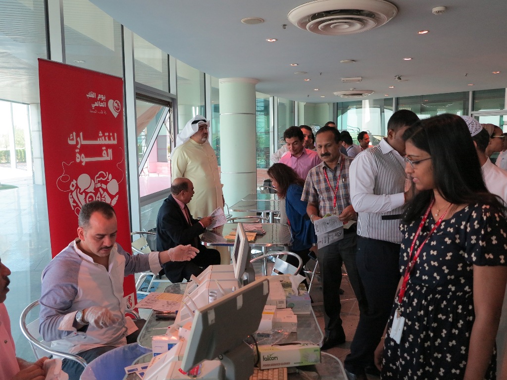 انطلاقا من جهودها في الحد من مخاطر امراض القلب و الاوعية الدموية نحو كوكب نعيش و نعمل فيه بصحة و حيوية ، نظمت إدارة التميز المؤسسي في مجموعة الساير القابضة حملة توعية بالتعاون مع جمعية القلب الكويتية في المكتب الرئيسي للشركة في المنطقة التجارية الحرة ، الكويت ، و كذلك في مكاتب تسليم و تأجير السيارات في العارضية .