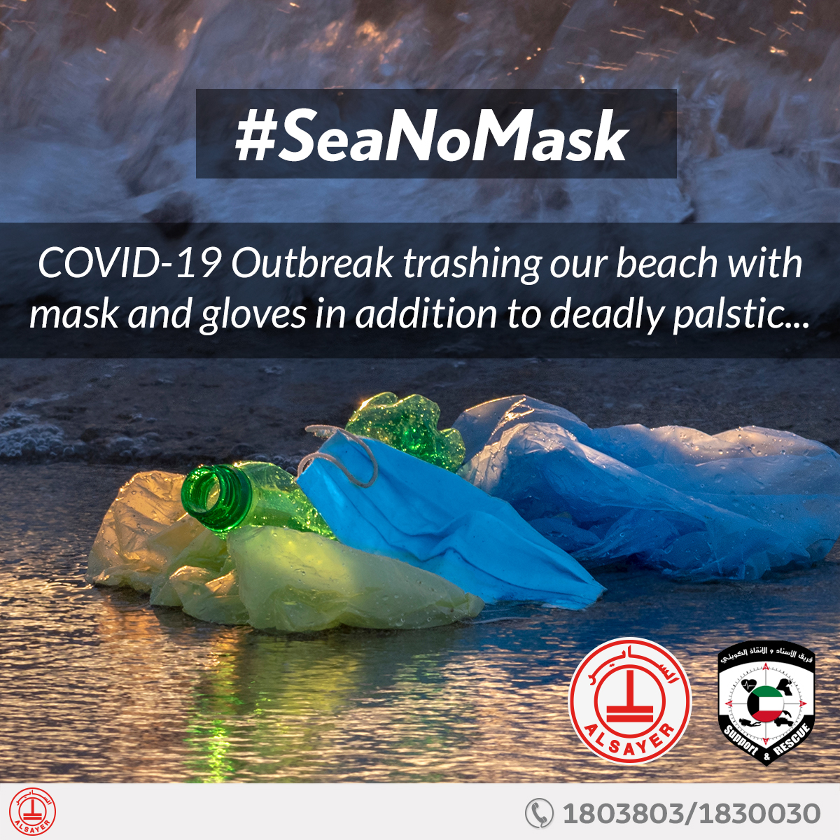 حملت حملة SeaNoMask”” رسالة إلى المجتمع حول تأثير COVID-19 على البيئة وخاصة على بحرنا وشواطئنا. لتنبيه المجتمع للتخلص بشكل صحيح من الكمامات والقفازات جنبًا إلى جنب مع القمامة البلاستيكية التي تتناثر عبرها.