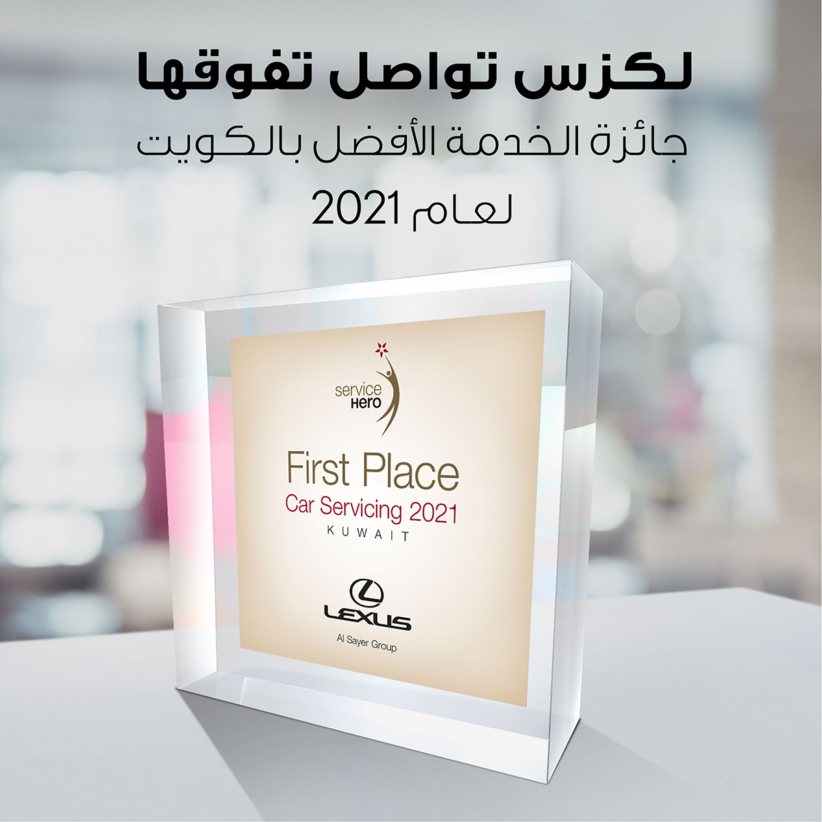 الكويت، العاصمة، 16 مارس 2022: نالت شركة مؤسسة محمد ناصر الساير وأولاده، وكيل علامة سيارات لكزس في الكويت جائزة الأكثر تميزاً في الخدمة خلال حفل توزيع الجوائز السنوي لعام 2021 الذي أقيم افتراضياً من قبل سيرفس هيرو، المؤشر الوحيد في المنطقة لقياس رضا العملاء وذلك في إطار جهود سيرفيس هيرو لتعزيز ثقافة التميز في الخدمة حيث تزدهر العلامات التجارية والعملاء.